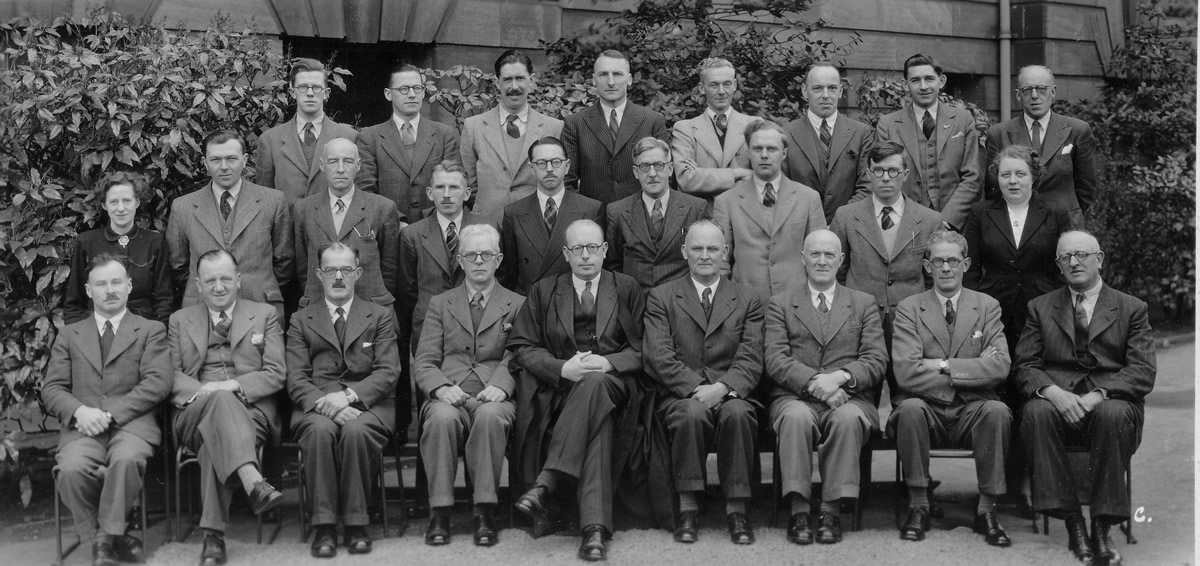 Middle Row: 1: Miss K. Pennymore (Headmaster's secretary) 2: Hall