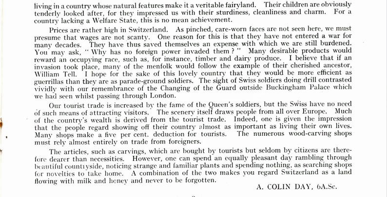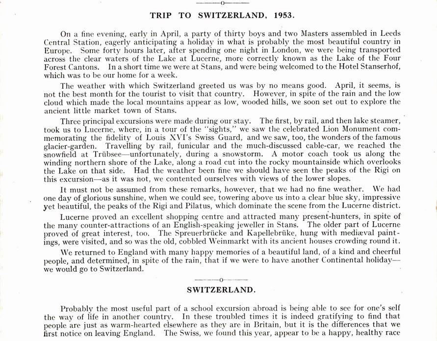 to London for the Coronation and the school trip to Switzerland that year.The